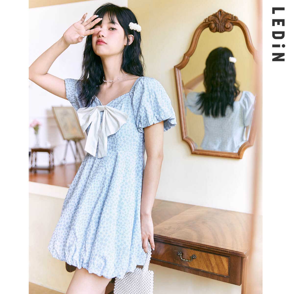 NT$9801080【推荐查看此演示商品】2021新款春女裝奶油蜜桃蝴蝶結連衣裙
