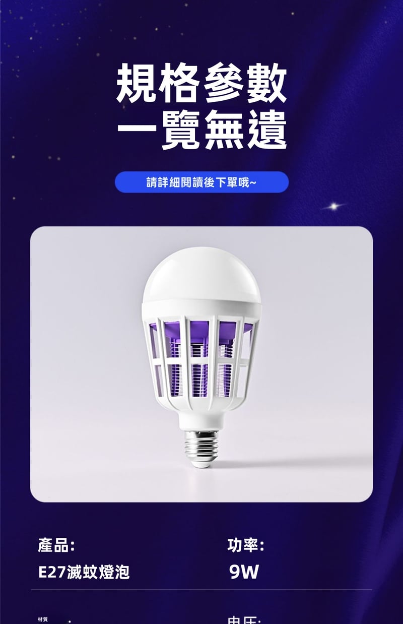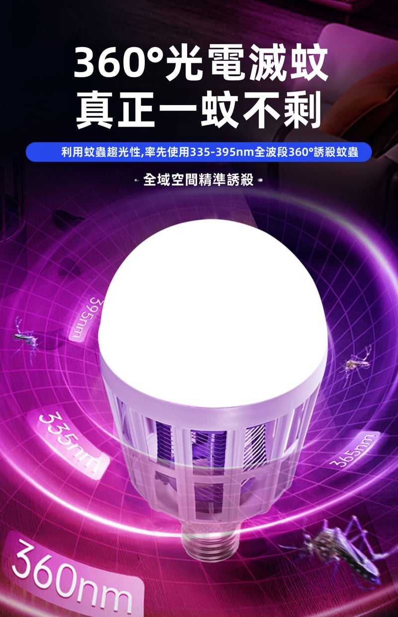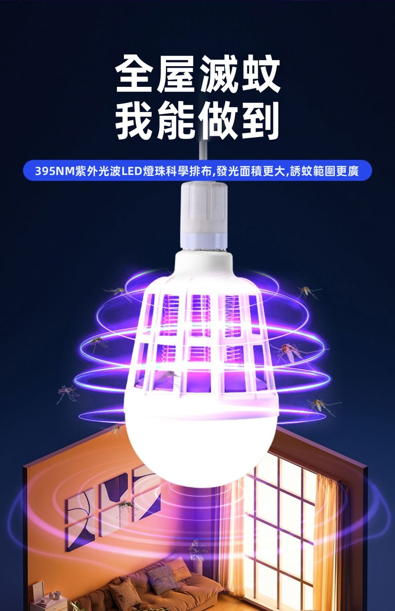 7分鐘前限時搶購 LED照明滅蚊燈E27螺口一擰即裝,UV紫光誘蚊,節能LED無頻閃,護眼超安全,居家戶外兩相宜 - 5入組-[均價299】NT$1499